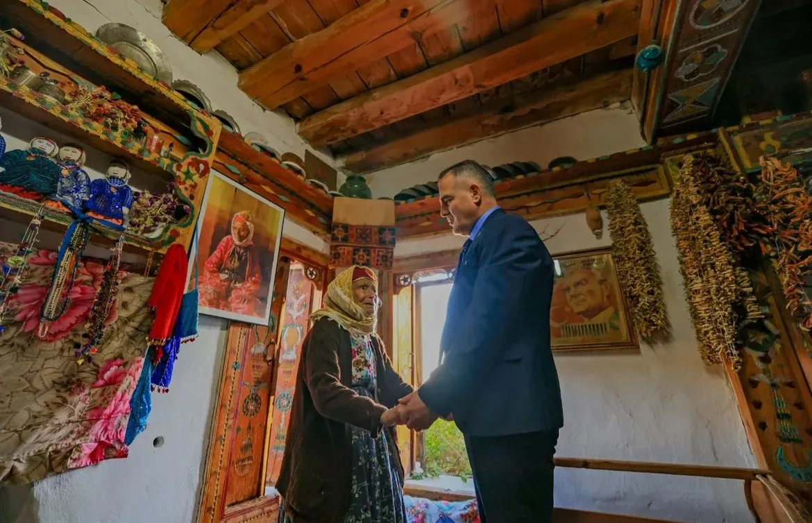 Fatmana Ertuğrul’un çeyiz olarak getirdiği eşyaları ve tarihi taş evi inceleyen Vali Akbıyık, yaşlıların toplum için taşıdığı değere dikkat çekerek, “Yaşlılarımız dün ile bugün arasında köprü kuran, tecrübeleriyle bizlere yol gösteren en değerli hayat rehberlerimizdir. Fatmana anamızın bizi görme isteğini bugün yerine getirdik. Onu sağlıklı ve hayat dolu görmek bizleri çok mutlu etti. Kendisine sağlıklı, huzurlu ve uzun ömürler diliyoruz” ifadelerini kullandı.