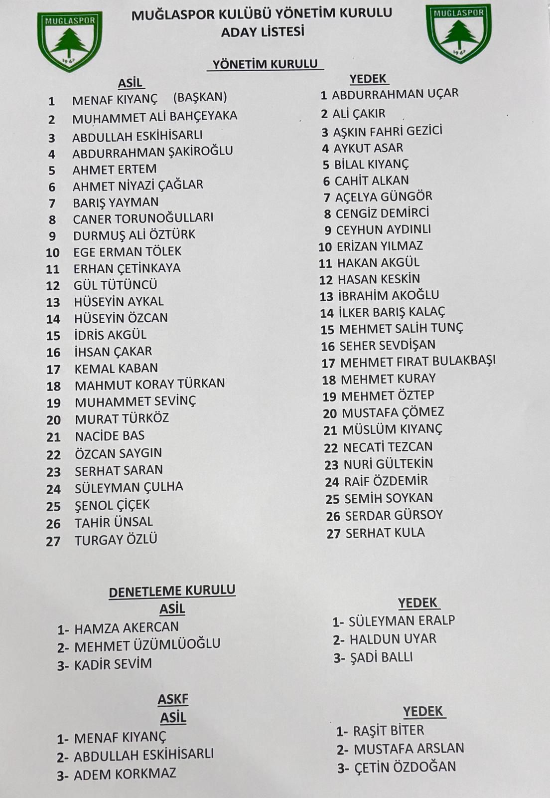 Menaf Kıyanç’ın Yönetim Listesi Şu Şekilde:
