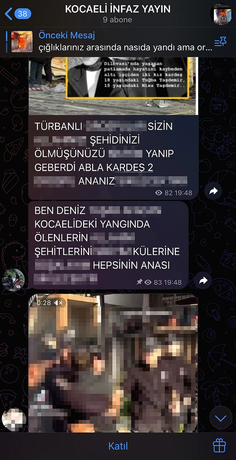 Olayın ardından “Kocaeli İnfaz Yayın” isimli bir Telegram sayfasında, yangında ölen vatandaşlara yönelik küfürlü ve hakaret içerikli paylaşımlar yapıldığı ortaya çıktı. D.Y.A. ve B.T. ismini kullanan şahısların hayatını kaybedenlerin fotoğraflarını paylaşarak küfürlü yazışmalar yaptıkları ve kendilerine tepki gösteren maktul yakınlarına da aynı şekilde karşılık verdikleri öğrenildi. Şahısların devlete ve şehitlere yönelik hakaret içerikli ifadeler de kullandığı paylaşımları, sosyal medyada büyük tepki çekti. Söz konusu şahıslar hakkında şikayetçi olunduğu öğrenildi.