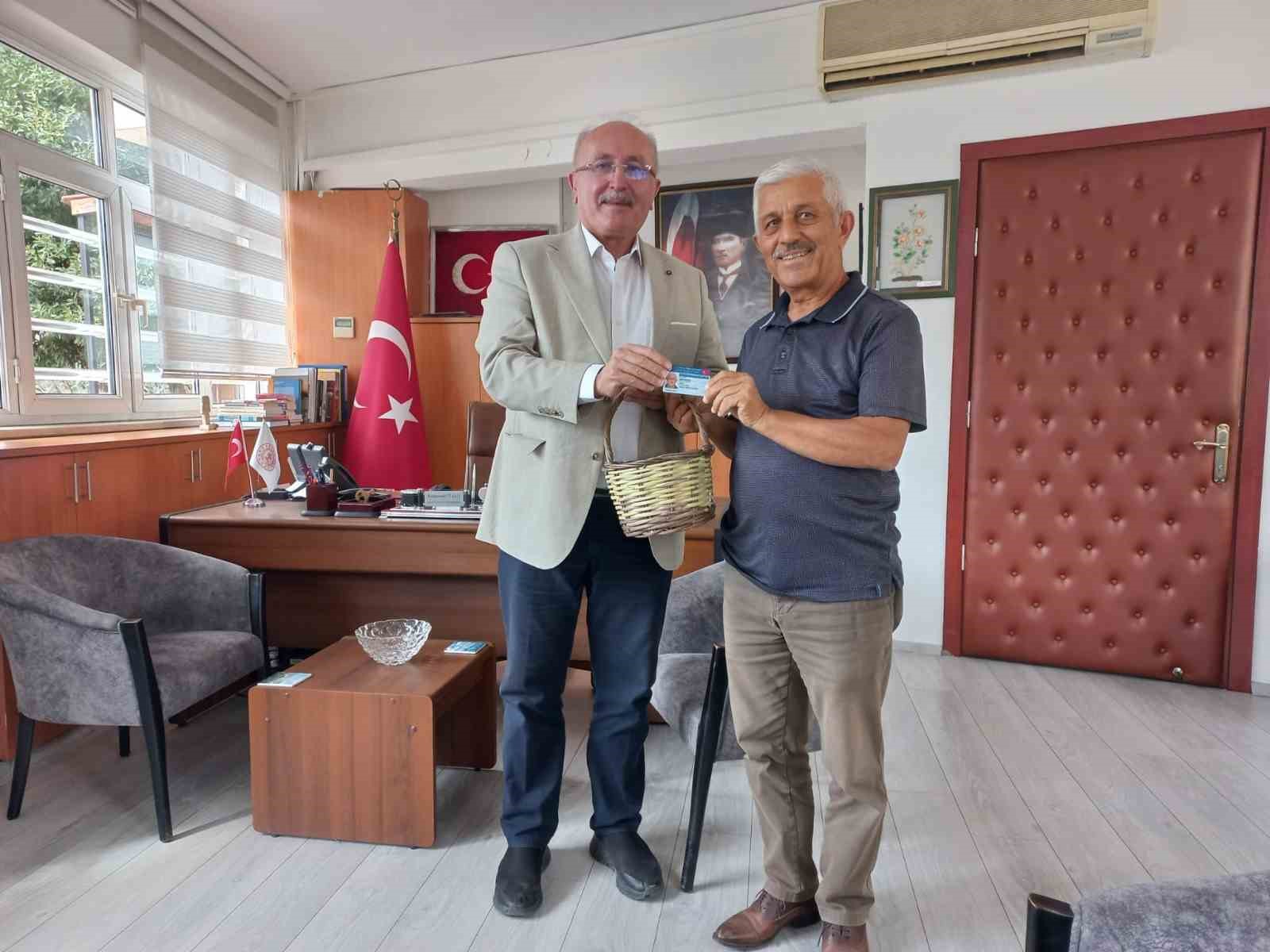 Sepet örme sanatçısı Muharrem Kaya, ördüğü sepetlerden birini İl Kültür ve Turizm Müdürü Hüdaverdi Otaklı’ya hediye etti.