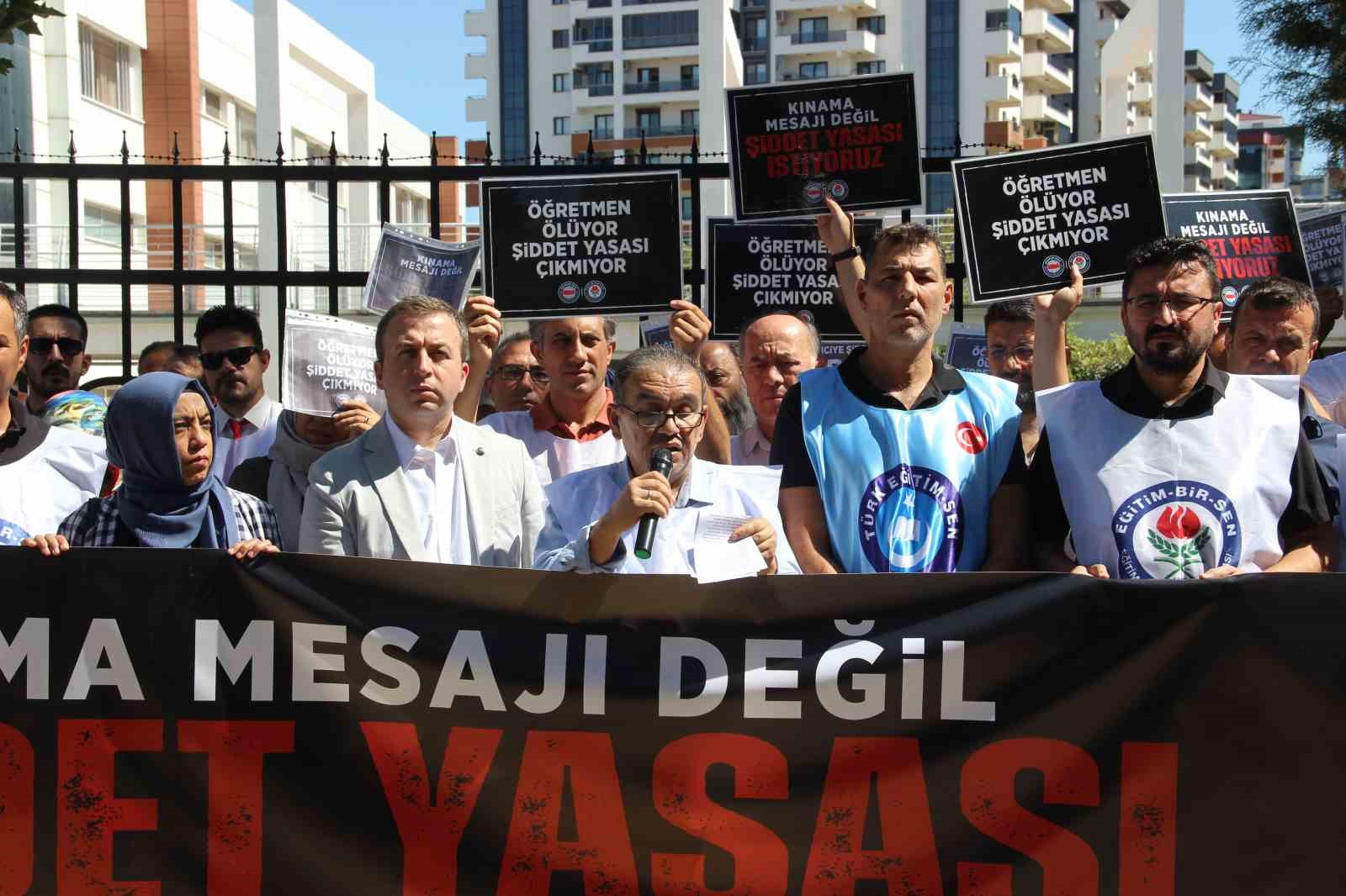 “Şiddetin, eğitimi tehdit eder boyuta ulaşması, geleceğimizi tehlikeye sokacak boyuta doğru tırmanıyor olması, acil ve köklü çözüm bulmayı zaruri hâle getirmektedir. Uluslararası hukukta ve anayasada ifadesini bulan hayat hakkı ilkesi çerçevesinde, kasıtlı ve hukuksuz şekilde ölüme, yaralanmaya ve zarara sebebiyet verilmesini önlemek devletin yükümlülüğüdür. Devletin bu yükümlülük çerçevesinde suç işlemekten caydırıcı yasal zemini ve idari şartları tesis ederek yaşam hakkını koruma ve ayrıca buna ilişkin ihlalleri önleyici, bastırıcı ve cezalandırıcı bir infaz mekanizması geliştirme ödevinin hukuk devleti olmanın gereği olduğunu hatırlatmak istiyoruz. Bu doğrultuda eğitim çalışanlarına karşı eğitim-öğretim kamu hizmetinin sunumundan kaynaklı şiddet eylemlerine yönelik cezai ve hukuki tedbirlerin alınması elzemdir. Eğitim çalışanları, kendilerine yönelik şiddet olaylarına karşı caydırıcı nitelikte münhasıran bir cezai müeyyide getirilmesini, şiddete uğrayana, çalışana da hukuki koruma sağlayacak türden yasal düzenlemelerin gerçekleştirilmesini acilen talep etmekte ve beklemektedir. Eğitim sendikaları olarak eğitim camiamıza geçmiş olsun dileklerimizi iletiyor, bir daha benzer olayların yaşanmamasını temenni ediyor, eğitimciye yönelik her türlü şiddetin yasal olarak takipçisi olacağımızı bir kez daha buradan kamuoyunun bilgisine sunuyoruz.”