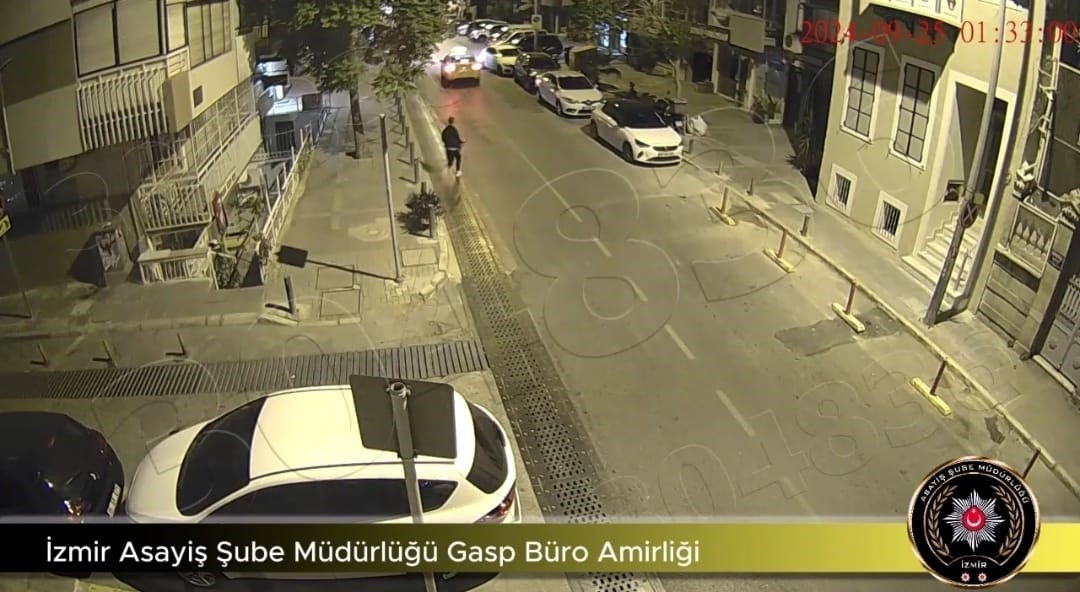 İzmir’in Konak ilçesinde, ATM’den emekli maaşını çeken yaşlı adamın gasp edildiği anlar güvenlik kamerasına yansıdı. Kısa sürede yakalanan zanlı, tutuklandı.