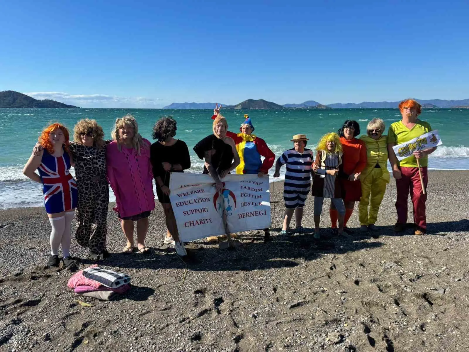 Muğla’nın Fethiye ilçesinde yaşayan çoğunluğu İngiliz uyruklu vatandaşlar, yeni yılın ilk gününde Çalış Plajı’nda renkli kostümlerle denize girerek ihtiyaç sahibi çocuklar ve hayvanlar için bağış topladı.
