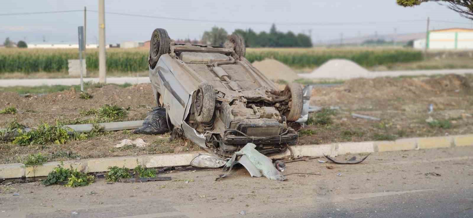 Afyonkarahisar’da kontrolden çıkarak orta refüje takla atıp hurdaya dönen araçtaki 2 kişi kazayı şans eseri yaralı atlattı.