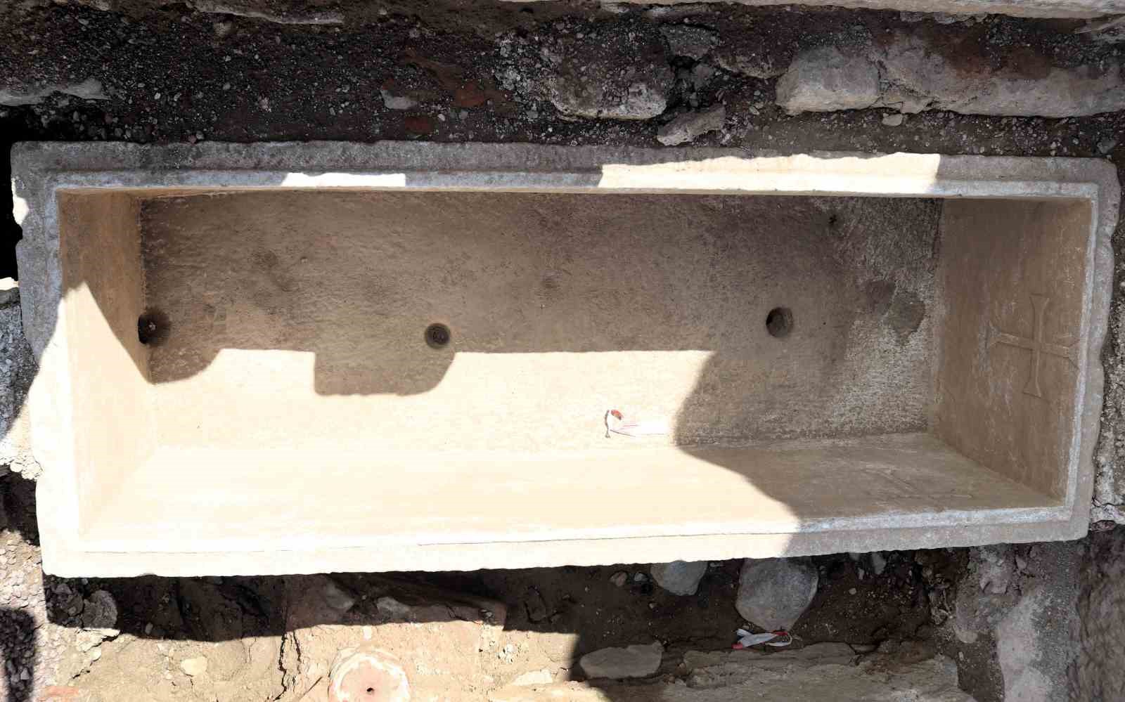 Mezarların içindeki haç kabartmaları hakkında bilgilendiren Mimaroğlu, “Haçlı lahit örneklerini genellikle İstanbul’da bulunan imparatorluk lahitlerinde görüyoruz ama bundan daha kaliteli malzemeden yapıldıklarını biliyoruz. Bu lahitin benzeri Marmara Adası’nda örneği çıkmış. Bir de Suriye’de var ama haç şekilleri farklı. Yayın çalışması için paralel örneklerini taramaya devam ediyoruz” dedi.