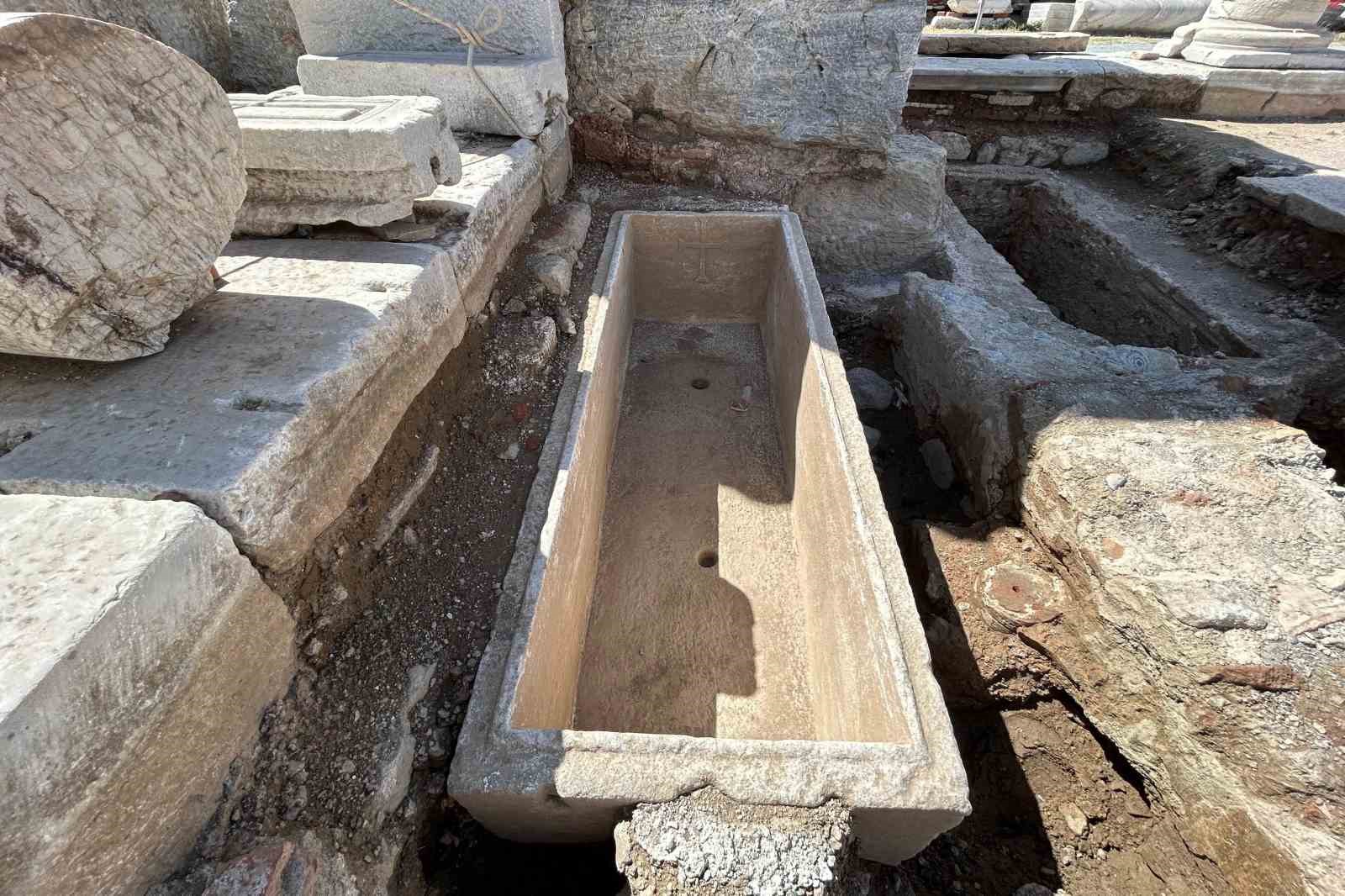 Kültür ve Turizm Bakanlığının izni ve bazı kurum ve kuruluşların desteğiyle gerçekleştirilen Ayasuluk Tepesi ve St. Jean Anıtı kazıları, Hatay Mustafa Kemal Üniversitesi Sanat Tarihi Bölümü Öğretim Üyesi Doç. Dr. Sinan Mimaroğlu başkanlığında sürüyor. Kazı ekibi tarafından son olarak Roma döneminden kalma, içerisinde 12 tane iskeletin bulunduğu bir lahit ortaya çıkarıldı. Doç. Dr. Ertan Yıldız tarafından epigrafik çalışması yapılan lahitin ‘Euphrates’ adında Romalı bir gladyatöre ait olduğu tespit edildi. Lahitin üzerinde epik kitabeler, iç tarafında ise M.S. 5. yüzyılda tekrar işlendiği belirlenen 3 adet haç kabartması bulunuyor.