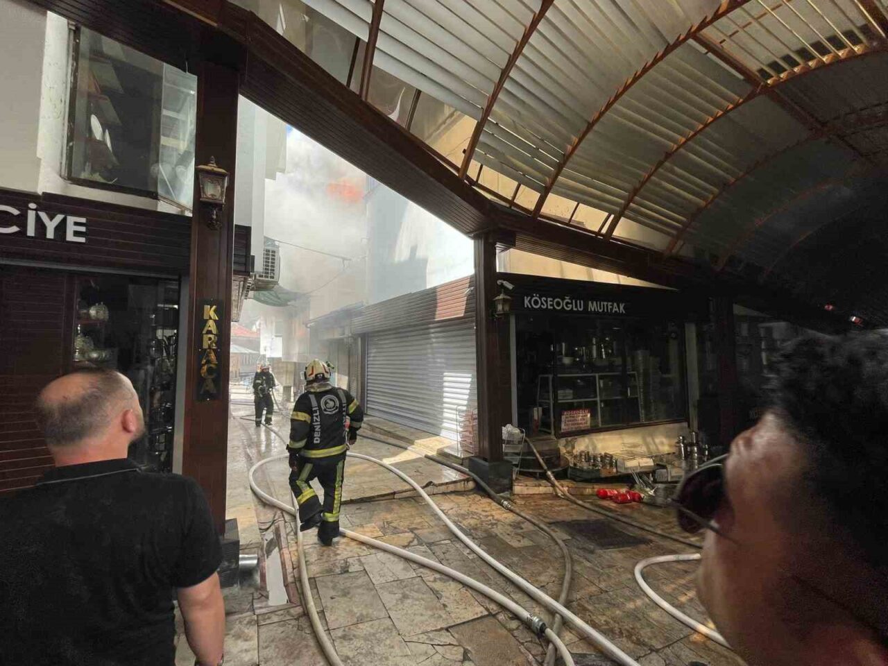 Edinilen bilgiye göre; bugün saat 15.00 sıralarında, Denizli’nin Merkezefendi ilçesine bağlı Saraylar Mahallesi 475 Sokakta faaliyet gösteren bir zücaciyede henüz belirlenemeyen bir nedenle yangın çıktı. Kentin en işlek alışveriş merkezlerinden birisi olan Kaleiçi Çarşısında çıkan yangın, tarihi mekandaki yolların dar olması ve gün içi yoğunluğu nedeniyle büyük paniğe neden oldu.