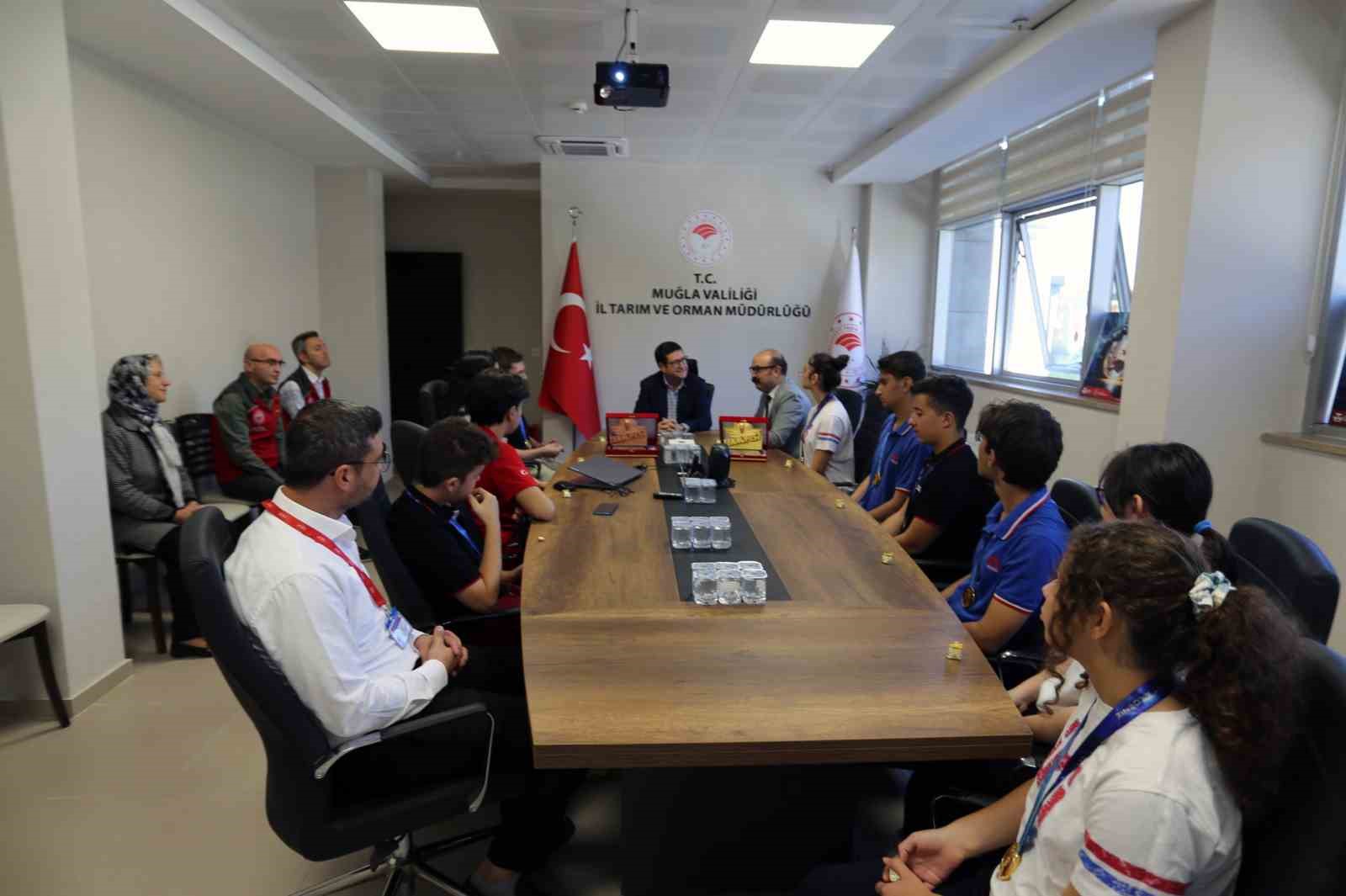 Hazırladıkları proje ile TEKNOFEST 2024 Yılı Tarım Teknolojileri Yarışması’nda “Ticarileştirme Potansiyeli Ödülü”ne layık görülen Milas’tan 9 lise öğrencisi, İl Tarım ve Orman Müdürü Barış Saylak’ı ziyaret ederek projelerini tanıttı.