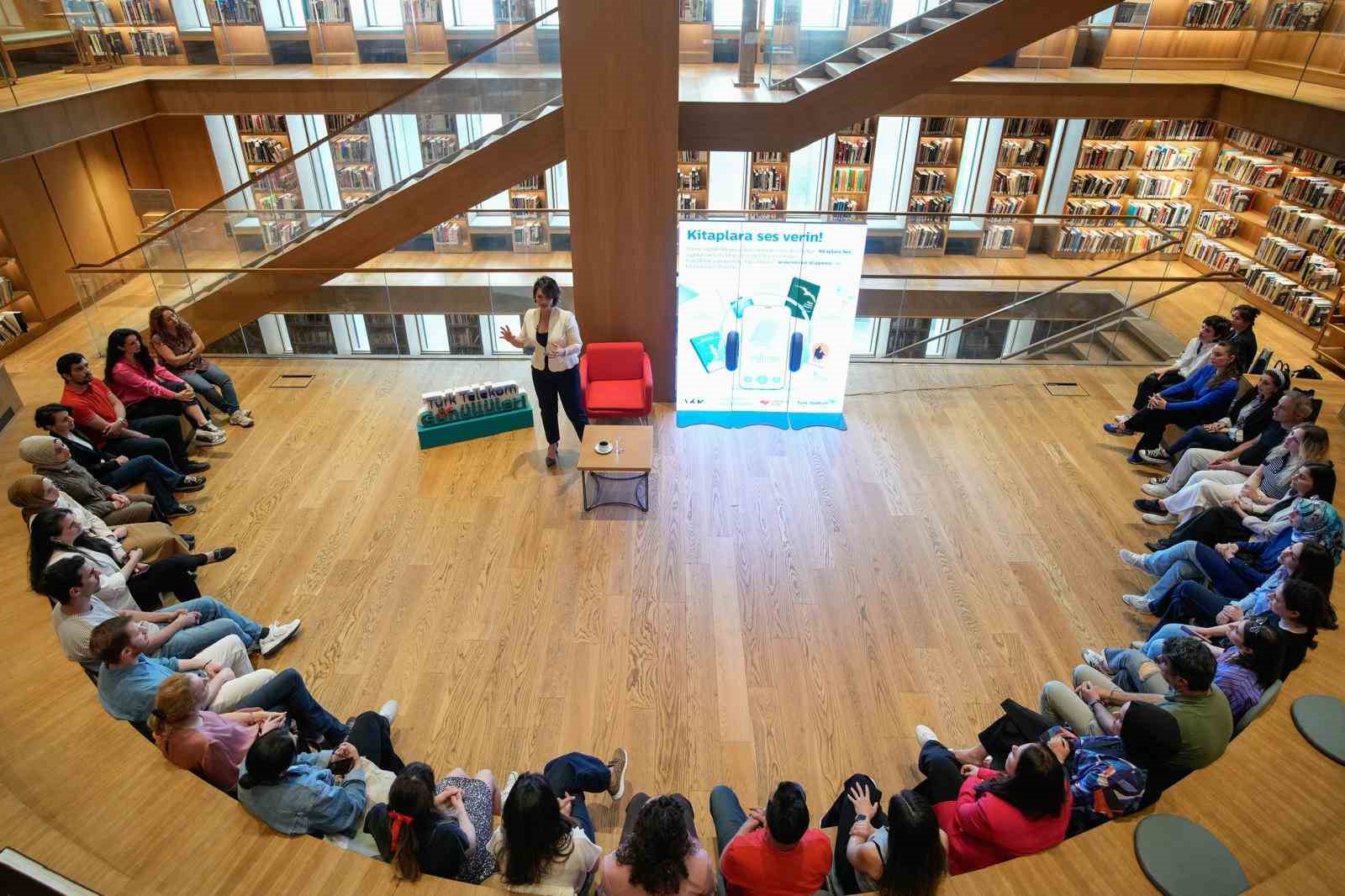 Görme engelliler için gönüllü kitap seslendirmek isteyen Türk Telekom çalışanlarına özel düzenlenen atölyede, tiyatro oyuncusu, sunucu ve yazar Açelya Akkoyun tarafından, daha etkili kitap okuyabilmek amacıyla tonlama, artikülasyon, diyafram kullanımı gibi konularda bilgiler aktarıldı. Türk Telekom, yürüttüğü projelerle engelli bireylerin toplumsal hayata eşit katılımını ve bilgiye erişimini desteklerken, çalışanlarının da bu konudaki farkındalıklarının artmasına katkı sundu. Görme engellilerin daha fazla sesli kitaba ulaşmasını sağlamak üzere, Türk Telekom’un Boğaziçi Üniversitesi, Görme Engelliler Teknoloji ve Eğitim Laboratuvarı iş birliğiyle geliştirdiği Kitaplara Ses uygulaması ile isteyen herkes telefonuna uygulamayı ücretsiz indirerek görme engelliler için kitap seslendirebiliyor.
