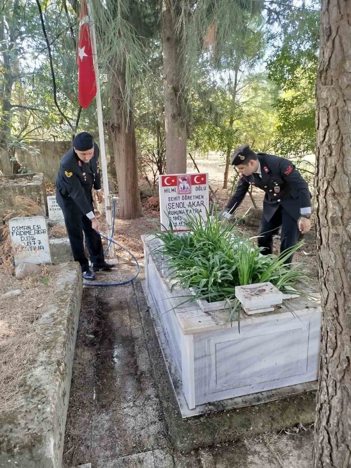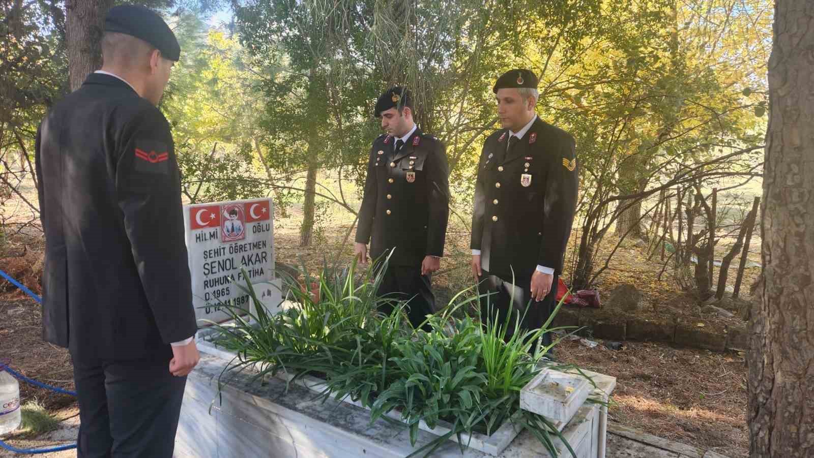 Aydın’ın Karpuzlu ilçesinde terör örgütü tarafından şehit edilen ilk öğretmen olan Şenol Akar, jandarma tarafından mezarı başında anıldı.