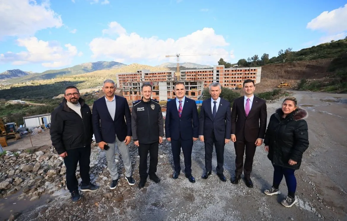Muğla Valisi Dr. İdris Akbıyık; Bodrum Kaymakamı Ali Sırmalı, Bodrum Belediye Başkanı Tamer Mandalinci, Bodrum İlçe Emniyet Müdürü Mehmet Darendeli ve Gençlik ve Spor Bodrum İlçe Müdürü Oktay Dumruk ile birlikte Bodrum Ortakent Mahallesi’nde yapımı süren öğrenci yurdu inşaatında incelemelerde bulundu.