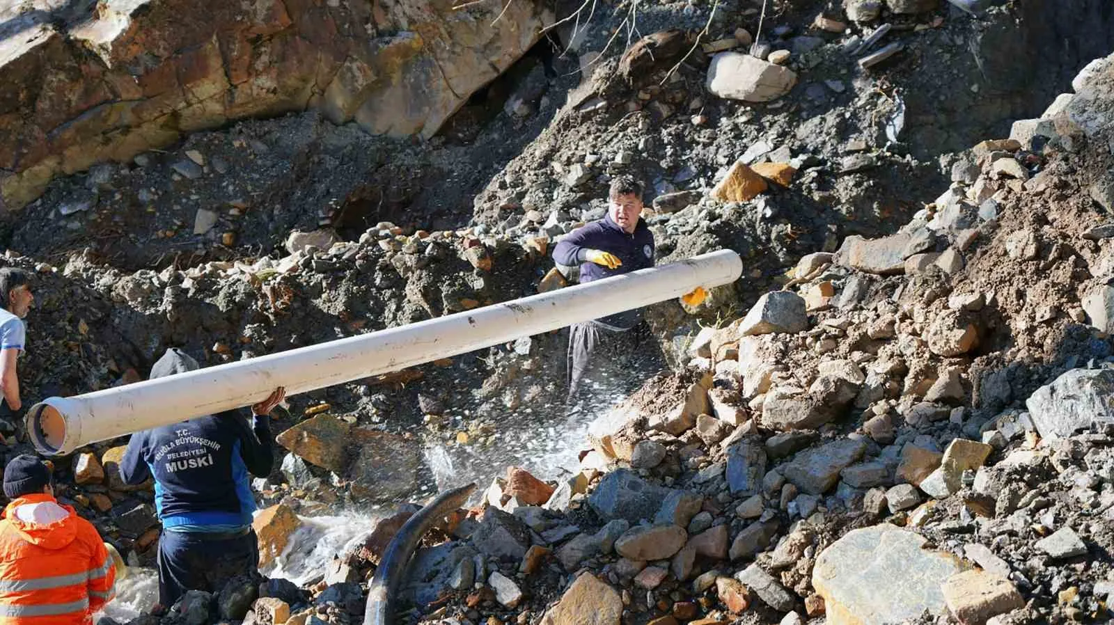 Toprak kaymasının zarar verdiği içme suyu hattına stratejik müdahale