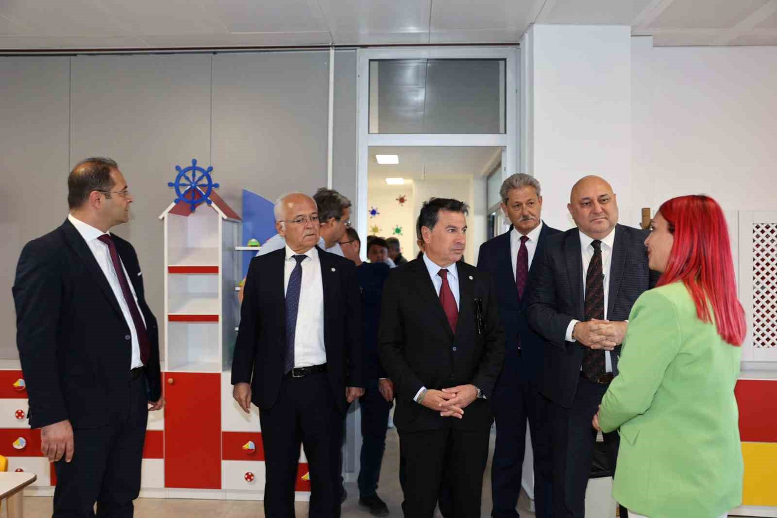 Muğla Büyükşehir Belediyesi okul öncesi çocuklar için gündüz bakımevi projelerine devam ediyor. Özellikle çalışan ailelere büyük kolaylık sağlayan gündüz bakımevlerine Büyükşehir Belediyesi bir yenisini ekliyor. Büyükşehir Belediye Başkanı Ahmet Aras’ın seçim vaatlerinden biri olan gündüz bakımevlerinden biri olan Yatağan Emin Eller Gündüz Bakımevi düzenlenen törenle açıldı. Açılış törenine Muğla Büyükşehir Belediye Başkanı Ahmet Aras ev sahipliğinde Yatağan Belediye Başkanı Mesut Günay, 27.Dönem Muğla Milletvekili Süleyman Girgin, CHP Yatağan İlçe Başkanı Mehmet Kemiksiz ve çok sayıda vatandaş katıldı. Yatağan Hasan Haşmet Işık Yüzme Havuzu ve Spor Tesisi içerisinde yer alan gündüz bakımevi 40 öğrenci kapasitesi ile hizmet vermeye başladı.