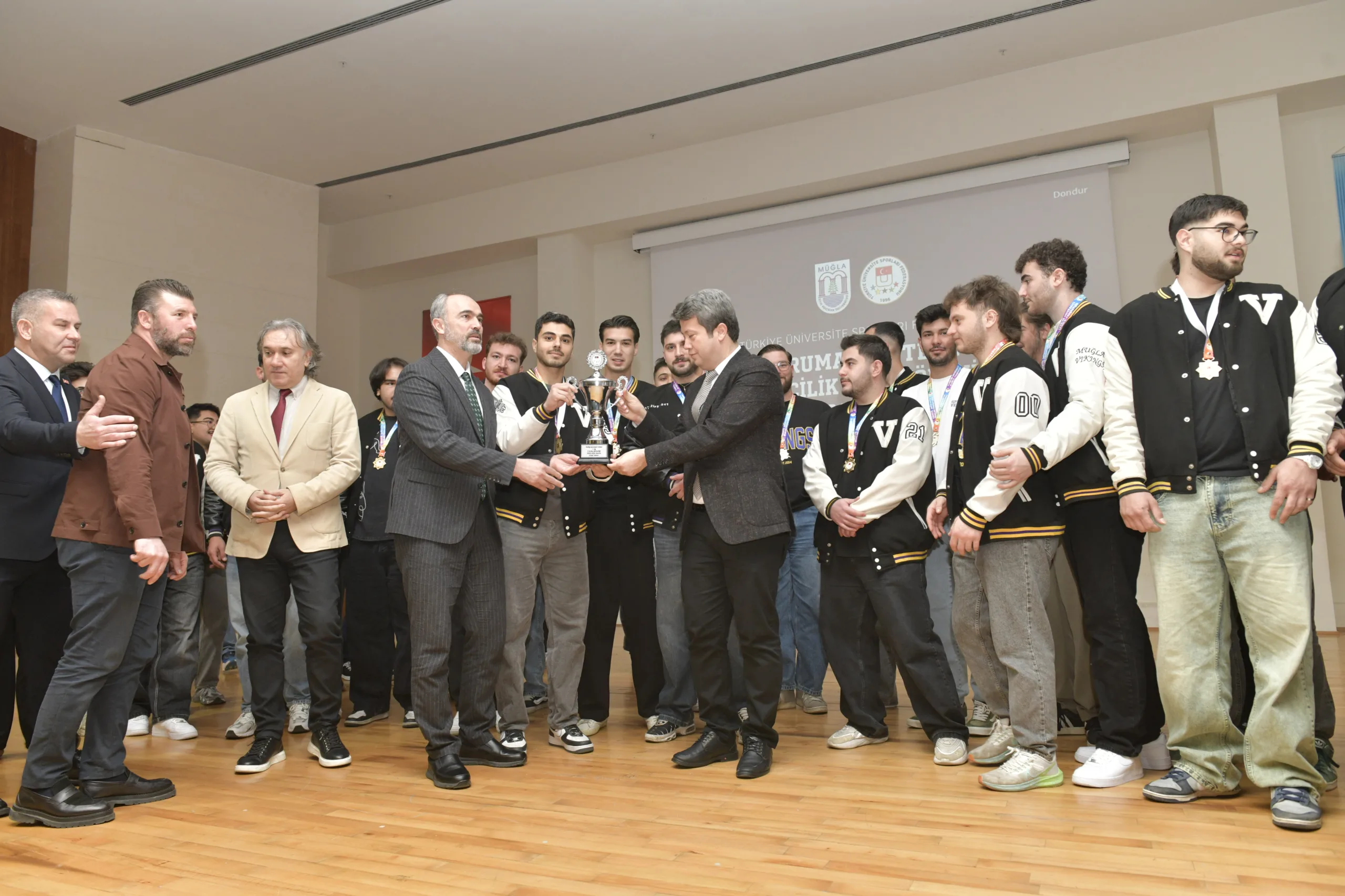 MSKÜ Rektör Yardımcısı Prof. Dr. Mustafa Gökçe, Spor Bilimleri Fakültesi Dekanı Prof. Dr. Özcan Saygın, Dekan Yardımcısı Prof. Dr. Tonguç Osman Mutlu, Öğr. Gör. Zeynep Aydoğan ve akademisyenlerin yer aldığı ödül töreninde, sporculara kupa ve madalyaları protokol tarafından takdim edildi.